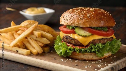 Burger with fries
