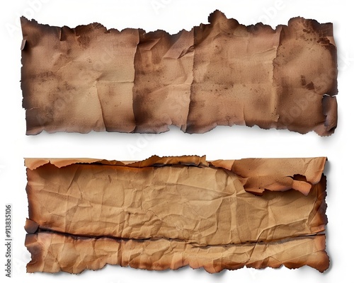 Burned Paper Edges Set. Isolated Burnt Edges of Paper on White Background