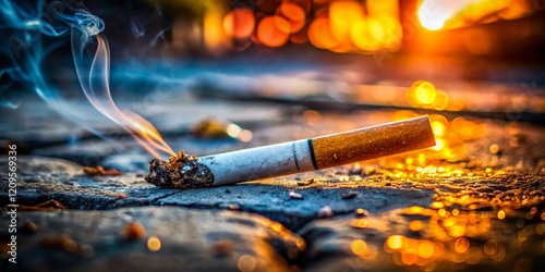 Burning Cigarette on Cracked Floor - Candid Stock Photo
