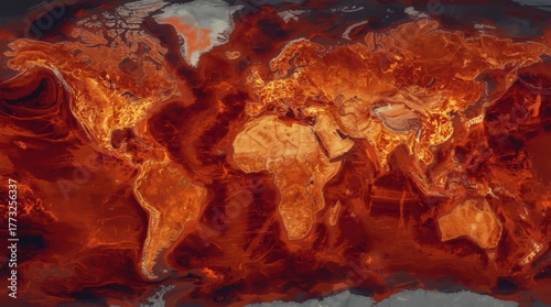 Burning world map concept representing global crisis and destruction