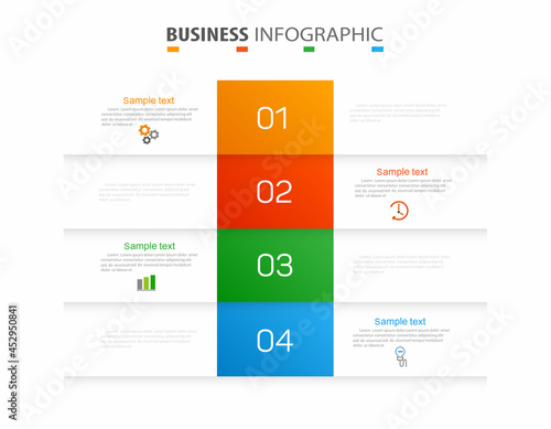 Business infographic design template with 4 options. Can be used for workflow layout, diagram, annual report, web design, steps or processes