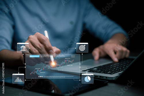 Business analytics and performance dashboard concept showing data visualization, growth metrics and digital charts for data driven decision making, financial analysis and enterprise strategy.