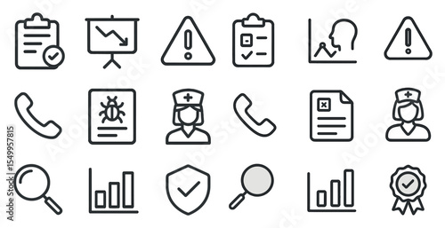 Business and analytics outline icons set – linear, data, management symbols