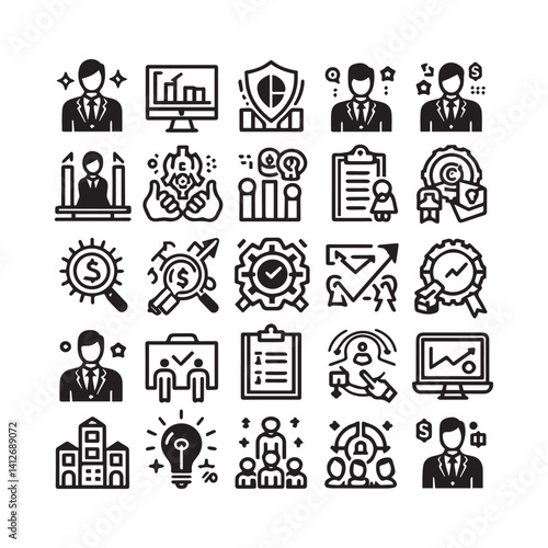 Business and management line icons set. Management icon collection. shilhouette vector white background