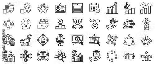 Business and Strategy Icons: Growth, Teamwork, and Success