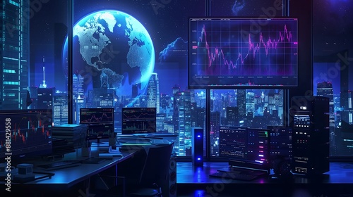 business background market charts in the night