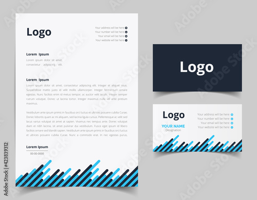 Business card and letterhead design set. Corporate and business style template. Modern and clean branding stationery design. fully editable file