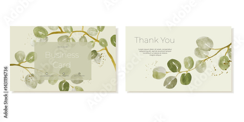 Business Card Templates With Botanical Watercolour Drawing Eucalyptus. Vector