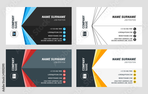 Business Card Vector Template. Flat Style Vector Illustration. Stationery Design. 4 Color Combinations. Print Template