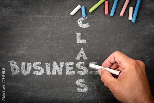 Business Class Concept Written with Chalk on Blackboard by Hand