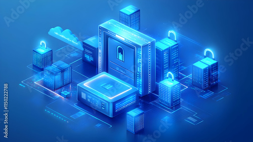 Business Cloud Storage Illustration with Digital Locks and Copy Space