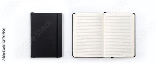 Business concept - Top view collection of black notebook on white background desk for mockup
