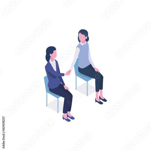 Business concept illustration on the subject of teamwork, Two businesswomen talking in an office, business woman in suit business, woman, people, couple, businesswoman, Business concept illustration