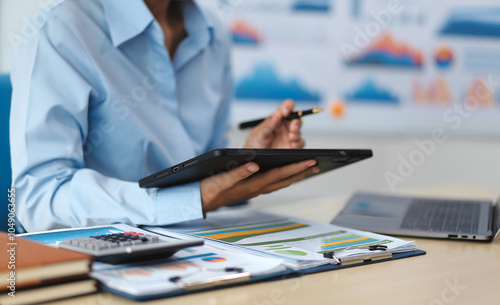 Business Documents, Auditor businesswoman checking searching document legal prepare paperwork or report for analysis TAX time,accountant Documents data contract partner deal in workplace office