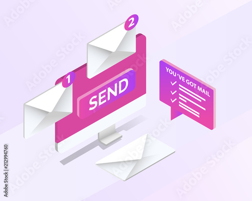 Business email marketing and digital communication isometric concept. vector