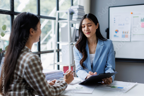 Business financing accounting banking concept. Two Business doing finances and calculate on desk about cost at home office. Businessworking on desk with using calculator, finance accounting.