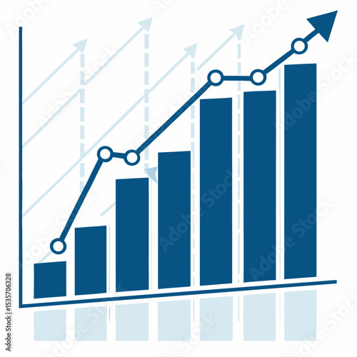 Business graph and chart with an upward arrow signifying financial market growth and success