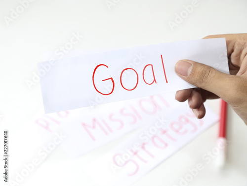 business hand holding a piece of goal paper