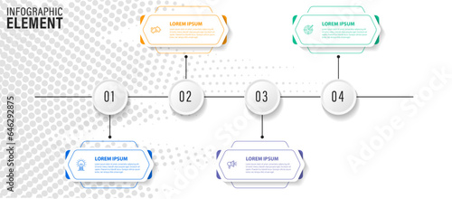 Business infographic element process template design with icons and 4 options or steps. Vector illustration.