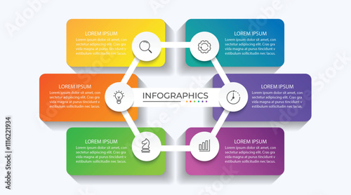 Business infographic template. 6 Step timeline journey. vector illustration