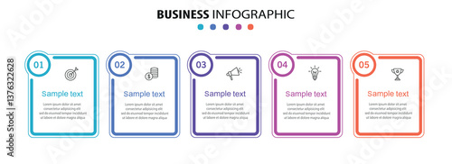 Business infographic template with 5 options or steps. Can be used for workflow layout, diagram, annual report, web design