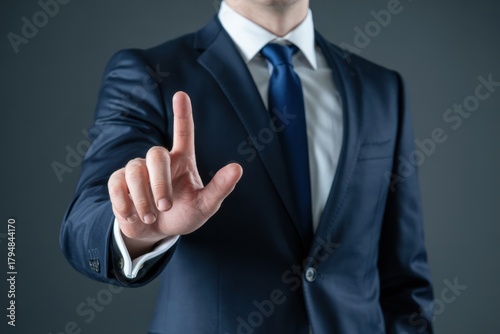 Business man pointing finger suit tie executive professional corporate leadership success vision