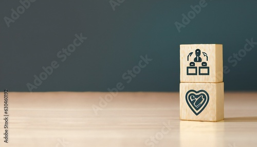 business management or business success concept. Wooden blocks with business icon arranged in pyramid stair shape