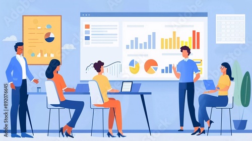 Business meeting team conference in office room. Flat character on presentation conference illustration, presenting charts and reports.nice illustration
