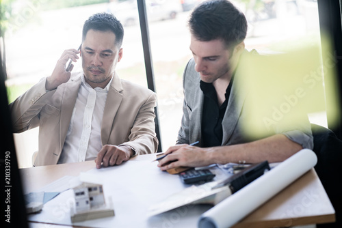 Business partners showing team work while working in meeting room at office interior Business consultant concept. Team work and successful project.