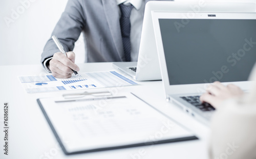 Business people discussing the charts and graphs showing the res