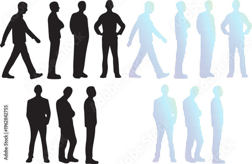 Business people silhouettes, walking men vector set