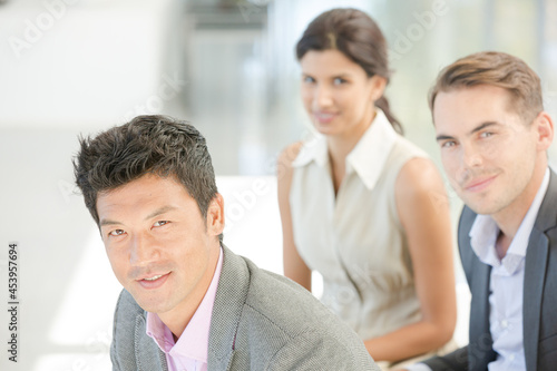 Business people smiling on sofa