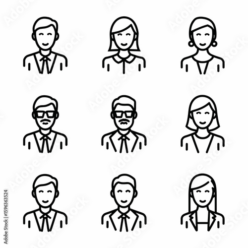 Business people vector icon sheet with diverse portraits in circles – Suitable for team profiles, corporate branding, or HR materials