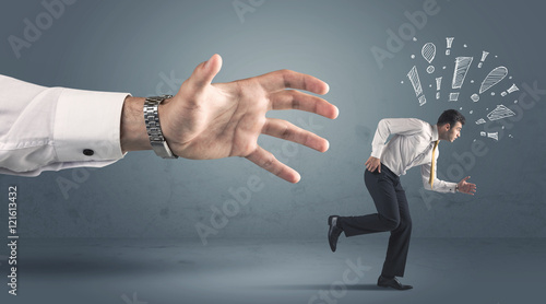 Business person getting away from a big hand