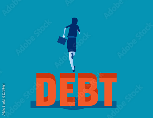Business person jumping over the debt. Concept business finance vector illustration, Achievement