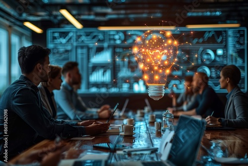 Business Professionals Brainstorming Ideas in Modern Office Setting