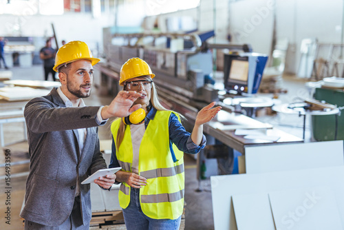 Business Professionals Collaborating in a Modern Industrial Machinery Environment