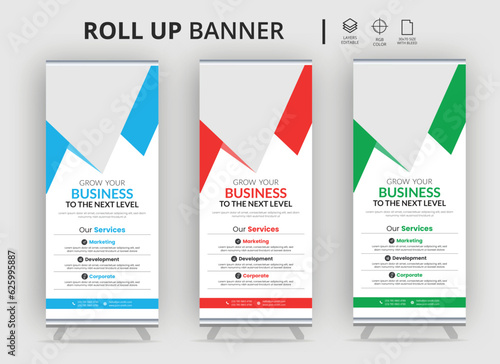 Business Roll Up Banner stand. Presentation concept. Abstract modern roll-up background. Vertical roll-up template billboard, banner stand or flag design layout.Modern roll up banner template, Standee