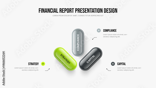 Business Solution 3 Step Infographic Slide Template. Professional Proposal Frame Layout Vector Illustration. Enterprise Forecast Three Element Diagram Presentation Design.