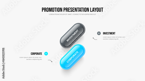 Business Strategy Slideshow Design Vector Illustration. Professional Campaign 2 Option Infographic Slide Template. Investor Solution Two Element Diagram Frame Layout.