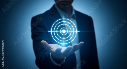 Business target concept with man in suit holding a target icon