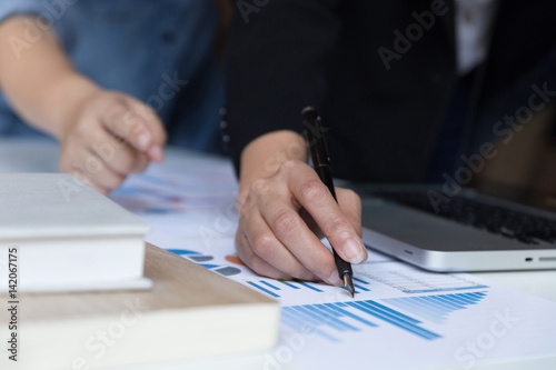 Business team analyzing income charts and graphs with modern laptop computer. business analysis and strategy concept.
