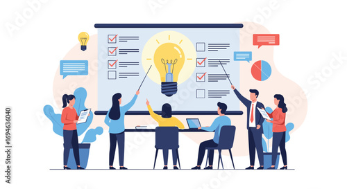 Business team brainstorming ideas analyzing strategy development and project planning together