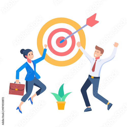 Business team celebrating achievement with target met vector illustration ready for various design applications