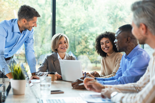 Business team discussing together business plans in office.