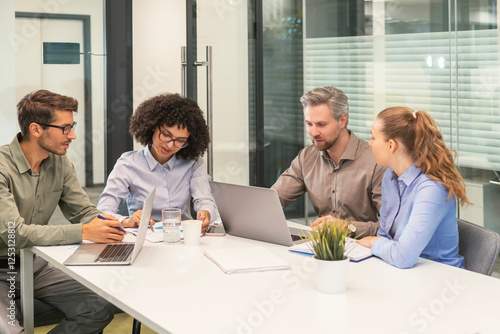 Business team discussing together business plans in office.