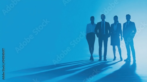business team standing together on a blue business background ar 169