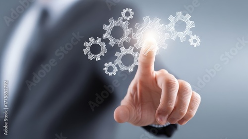 Business Technology Innovation: Hand Touching Gears, Activating System, and Driving Technological Advancement for Business Success