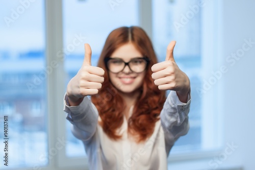 business tumbs up woman