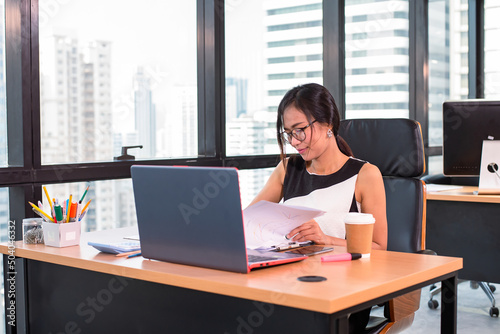business woman check document in modern office